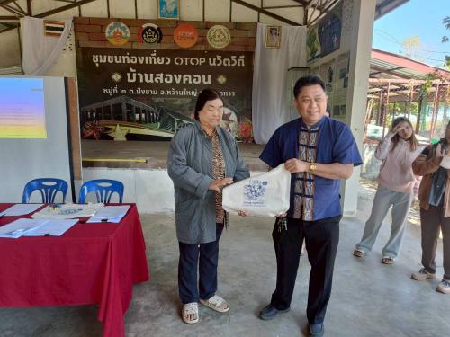 ณ ศูนย์จัดการกองทุนชุมชน บ้านสองคอน หมู่ที่ 2 ตำบลป่งขาม อำเภอหว้านใหญ่ จังหวัดมุกดาหาร